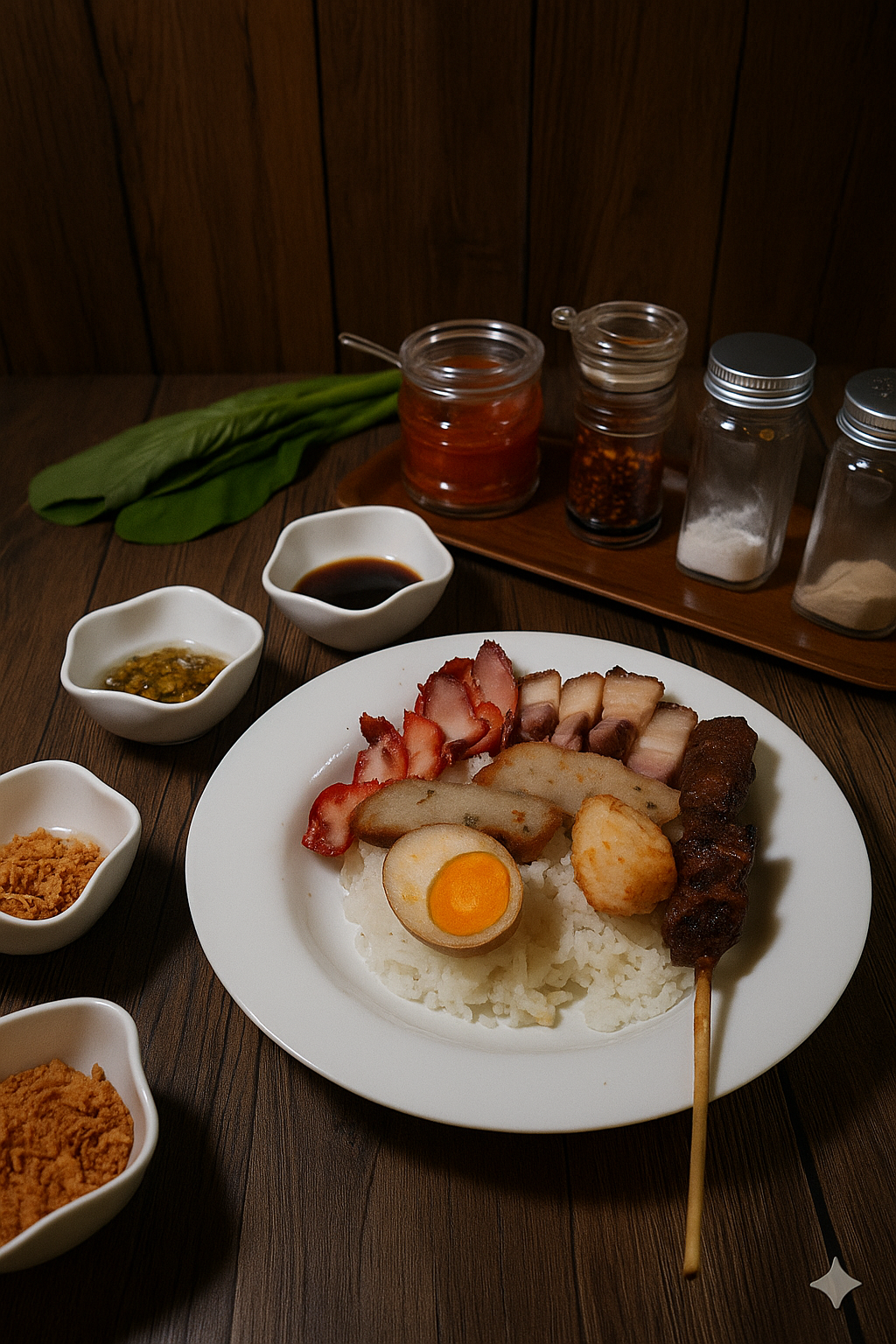 Nasi campur dengan chasio manis-gurih dan siobak crispy khas Guapatlu.